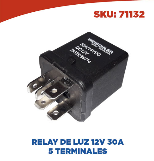 RELAY UNIVERSAL 12V 20A 5 TERMINALES MINI MARCA WEISCHLER